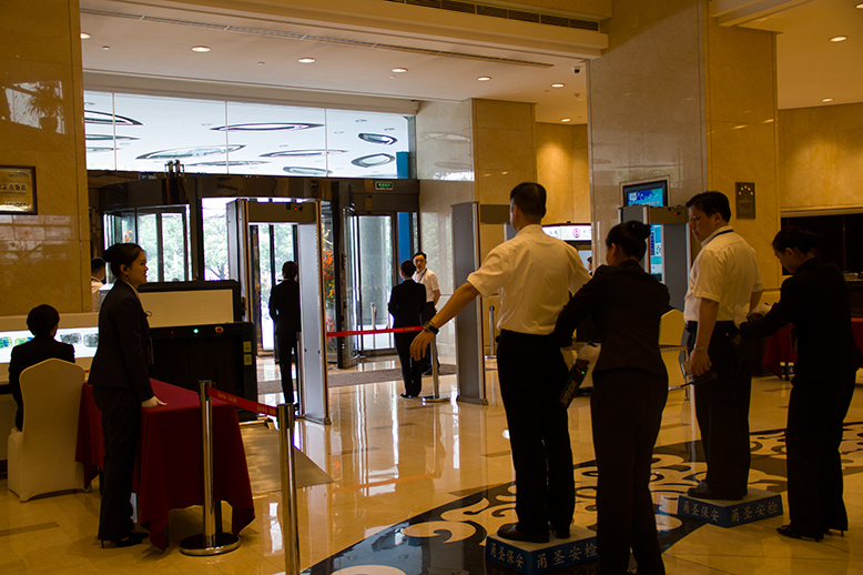 98098彩票作为本次活动主办方层层筛选的安检服务商,公司总经理杨永胜先生携公司安检部负责人,陪同宁波市治安支队重大活动领导及组委会相关负责人、对此次参会人员下榻酒店南苑环球酒店、及各分会场雷迪森酒店、泛太平洋大酒店、宁波洲际酒店以及香格里拉酒店多次赴现场勘查,精心制定安检方案,现场部署安检机10台,安检门15扇以及安检人员150人次,针对各种突发性事件出台各种紧急预案。为了做好本次安检工作,全体安检人员提前一周参加全英文安检培训,高标准、严要求,用实际行动践行“安全万无一失,服务永无止境”的服务理念。南苑环球酒店实行24小时封控,安检人员提前2小时到岗,发扬了不怕疲劳,连续作战的拼搏精神。安检人员严格执行安检工作标准,细化安检人员岗位职责,提高安检人员工作要求,遵守安检工作原则。安检人员精益求精、细之又细的工作态度无不体现公司领导对于本次工作的高度重视。