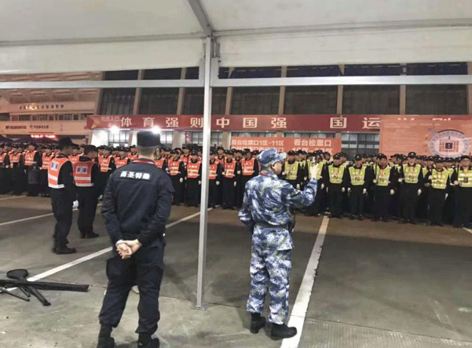 为确保安保工作顺利进行,公司总指挥杨永胜携31位资深队长及580名特勤队员提前4小时到岗,按照预定方案进行工作部署。各组长及队员分别到达各自岗位,做好安全防范。