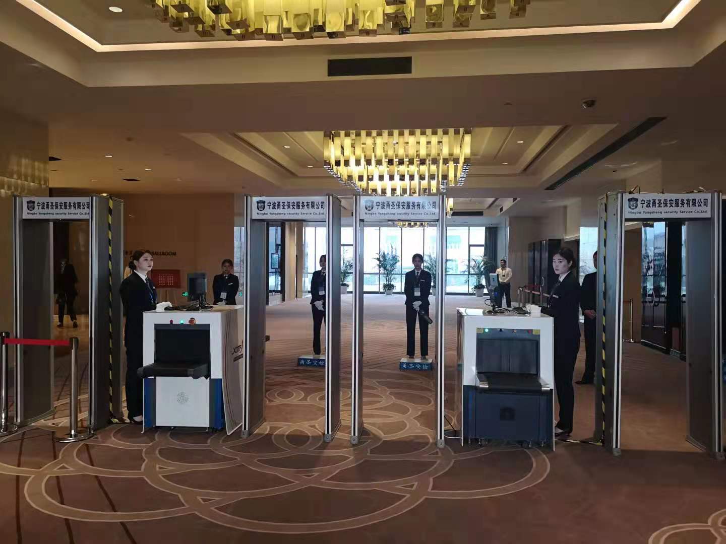 宁波南苑饭店招待晚宴 宁波甬圣保安服务公司已连续两年作为世界“宁波帮·帮宁波”发展大会的安检、安保合作单位。此次大会嘉宾不光阵容强大,高端人才众多,并且参会嘉宾约为上届参会嘉宾人数的1.5倍,参会嘉宾总数为1100余人。为确保本次发展大会的顺利举行,宁波甬圣保安服务有限总经理杨永胜携公司各部门负责人多次勘查各个活动场地,提前两周部署安检、安保工作任务,并制定周密的安检、安保方案。发展大会期间全体安检、安保队员提前2小时到岗待命,明确工作职责,强调礼仪礼貌,对所有安检设施及内场场地进行仔细检查,排除隐患,保证大会顺利召开。