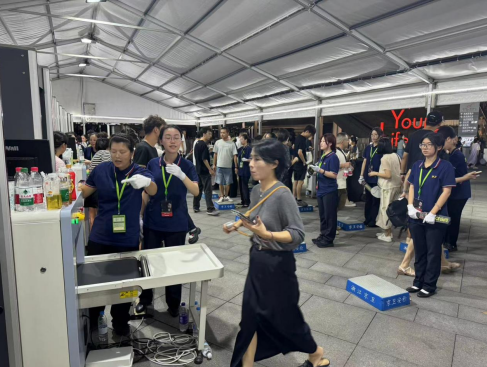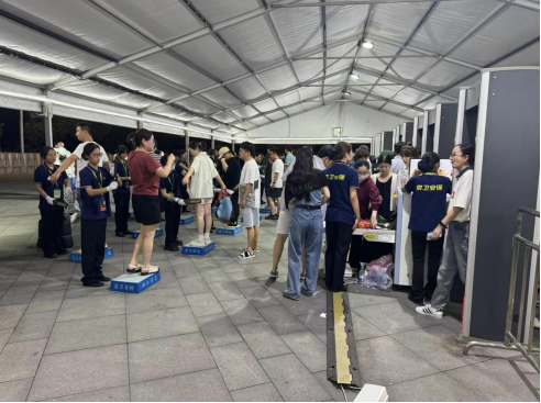 演唱会期间,安保指挥部成员坐镇监控指挥室,运用新型安保监控指挥系统,全方位检查安保、安检部署、安保措施落实情况,不放过任何一个可能影响安全的细节和漏洞。 下午13:00,安保人员抵达安保现场,清场、警戒等一系列安保措施有序展开。