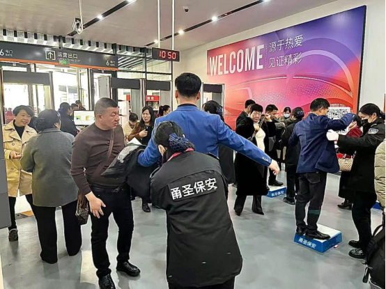 盛典期间,安保安检指挥部科学作出决策部署,及时调整执勤人员布防,安保、安检、后勤人员各尽其责、协作配合,做到整体联动、消除盲区、形成合力、无缝衔接。参勤人员按照“信息共享、相互支援”的原则,及时处置可能发生的各类突发事件。各队督查队长们全程跟进,强力推动各项安保安检措施精准落实、精细执行,参勤队员着装规范、仪容严整。经过全体参勤队员的共同努力,确保了盛典期间会场秩序稳定、区域管控安全,充分展现了宁波甬圣保安的高品质服务和良好形象。以区域面的绝对安全稳定保障三生(中国)20 周年盛典顺利举办。