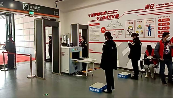 高标准落实 按照本次盛典安保安检工作“安全第一、预防为主”的要求,宁波甬圣保安组织部门在反复实地踏查、分析研究、风险评估的基础上,周密制定了科学的安保安检工作方案、应急处突预案和专项工作方案。在指挥部统一指挥下,全程组织、督导安保安检工作,绷紧思想之弦、恪守岗位之责,高站位、高标准、高质量落实安保措施,切实做到工作预案“零疏漏”、工作部署“零缺陷”、工作过程“零失误”、工作执行“零偏差”。盛典期间,累计出动安保安检后勤力量100余人次。