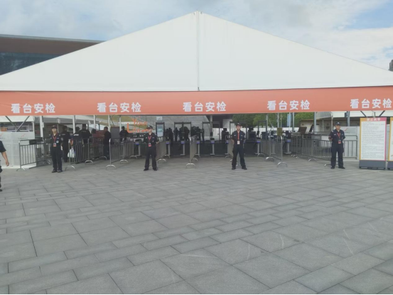 精细安检,科技赋能严守安全第一关 甬圣保安针对活动规模、场地条件和人员构成,制定了详细的安检方案。在演唱会筹备时,专业安检员携运用监测仪对入场观众人身及携带物品进行了检测,对上万件入场物料实施安检登记工作。有效杜绝了违禁物品进入活动现场。