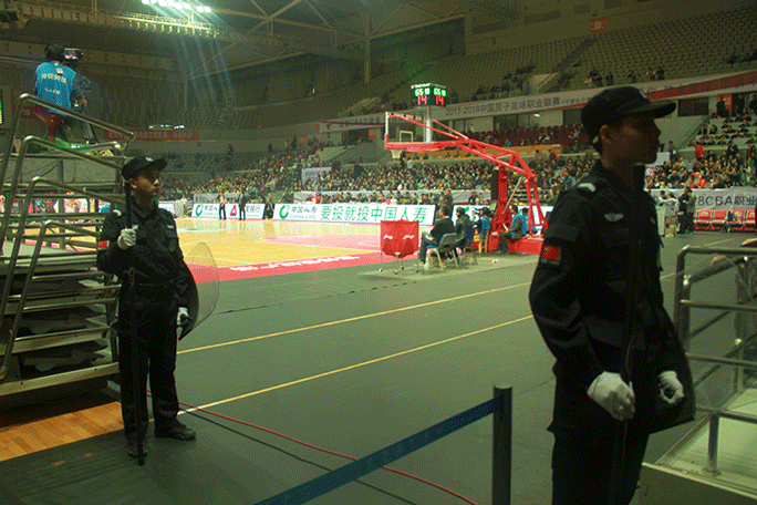 2017年11月17日,CBA 联赛八一双鹿电池对战上海哔哩哔哩在宁波北仑体育馆进行。当天购票观众人数较多,且天气环境恶劣,安保工作相当难开展。