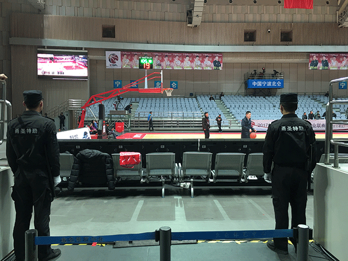 2017年12月6日,CBA联赛八一双鹿电池对战南京同曦在宁波北仑体育馆正式开赛。 此次比赛关注度高、参加人数多,且恰逢八一双鹿十一连败,观众情绪普遍激动,为了保证场内球员安全、维护赛场秩序,本次比赛加派安保人员至150余人,加强了对运动员通道、赛场出入口、运动员休息室、观众席等处的监控、防卫力度。